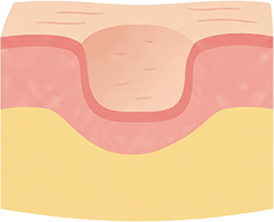 피부 속 손상이 남아 자연적으로는 쉽게 회복되지 않는 함몰 흉터입니다.