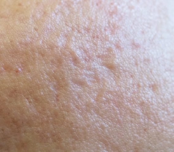 피부 표면이 물결치듯 울퉁불퉁해 보입니다.
