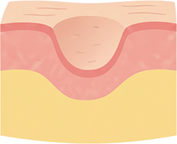 피부 속 손상이 남아 자연적으로는 쉽게 회복되지 않는 함몰 흉터입니다.